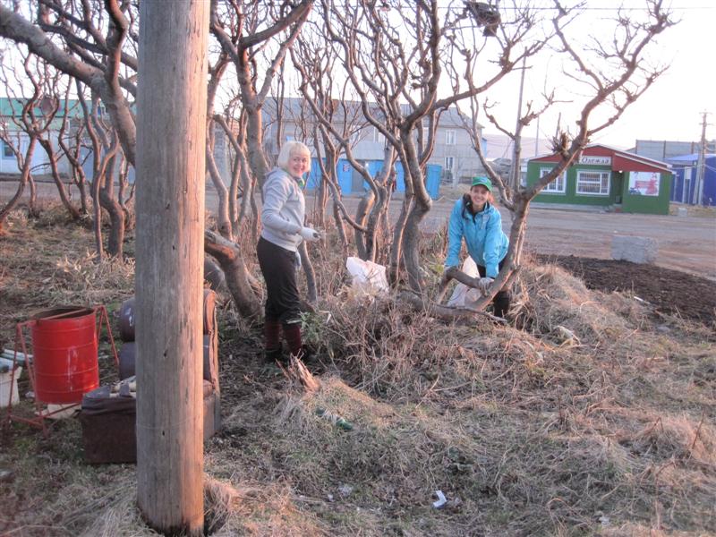 Вчера был замечательный теплый понедельник! Самое время для борьбы за чистоту! А мест для этого в Курильске предостаточно! Например, городская лестница (вчера ее вроде бы начали красить - перила красной краской), вдоль улиц и т.п. Одно из злачный мест в этом плане - лесок между аптекой и банком "Итуруп". Там классные кривые рябины растут - местный вариант. Часть из этих рябин мешали проезду и канавам, поэтому их уничтожили... Но не это главное - там есть где развернуться в плане борьбы за чистоту! Те кто должен поддерживать это состояние города - этим не занимаются, но ведь кто-то должен? Решили - что это будем МЫ - "Зеленый остров"!