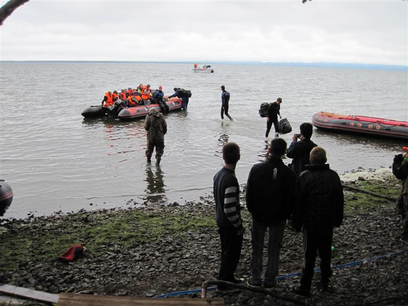 О питании... В каждом лагере была своя кухня - палатка с кухонными принадлежностями, газовой плитой, большими кастрюлями и т.п. Еду готовили на газе, но не запрещалось и на костре... Вода в озере - соленая, ее использовали для приготовления первого и второго, а для чая - воду в больших бадьях привозили с речки, где вода пресная. Умывались и мыли посуду - в озере или водой из озера. Рядом с кухней - большая палатка с большим столом и скамейками - столовая. Посуда у каждого своя - после себя её мыл каждый сам. Для приготовления еды выбирались дежурные, в обязанности которых входило получение продуктов на свой лагерь центральной поляне (там был склад продуктов, и Маша их выдавала на всех), приготовление еды, подготовка столовой (нарезать хлеб, открыть банки с консервами и т.п.), по окончании все убрать, помыть кастрюли, убрать оставшиеся продукты, ну подготовить кухню для следующего дежурства. На завтрак как правило была какая-нибудь каша, бывало молочная, чай, печенюшки всякие, повидло, масло, конфеты. На обед - суп, второе (крупа какая-нибудь), салат, чай-компот, печенюшки всякие и т.п. На ужин тоже какая-нибудь каша. Паштеты, кукуруза-горошек консервированный, сыры - это почти постоянно присутствовало. Несколько раз привозили свежую рыбу - уха была пару раз, рыба жареная. Дежурили по двое, в основном. За неделю каждый передежурил по несколько раз. Профессиональных поваров среди нас не было. Готовили кто как мог. Но все было съедобно и без последствий для организма... А вода для просто питья - в бутылках. Солнечная батарея с аккумулятором использовалась только для освещения. Для работы оборудования (компы, проектор, зарядка телефонов-фотоаппаратов) - имелась бензиновая станция, которую при необходимости запускали. Тропка до туалетов освещалась солнечными светильниками, которые днем заряжаются, а ночью сами светят, но в нашем лагере это было не эффективно, т.к. лес хвойный, и света мало, аккумуляторы у светильничков не заряжались как надо.