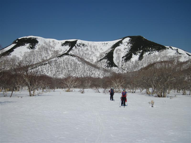 Есть у нас на острове интересная гора с названием Верблюд. Ее высота 720 метров. С нее весь хребет Грозный, на котором находится большинство действующих вулканов острова, включая самый посещаемый вулкан Баранского - как на ладони! А внизу протекает самая большая речка острова - Куйбышевка! Место потрясающее! Зимой туда проще добраться на лыжах, но можно и без них, но придется проваливаться, т.к. солнце разогревает снег и он становится мягкий, а лыжи - отлично держат... И вот, как же закрывать лыжный сезон, как не хорошим походом в неизведанные места?! Я был на этой горе, когда еще учился в школе, мы ходили с отцом, без лыж (и видели живого медведя, который от нас убежал). Сейчас и мои дети примерно в том же возрасте, и нужно и им показать то, чего я сам видел и от увиденного пришел в полный восторг! 30 апреля, воскресенье, погодка подходящая. На такси за 1.5 т.р. доехали до начала Сапуна. Вышли на снег. Одели лыжи. И на юг (точнее, на юго восток)!